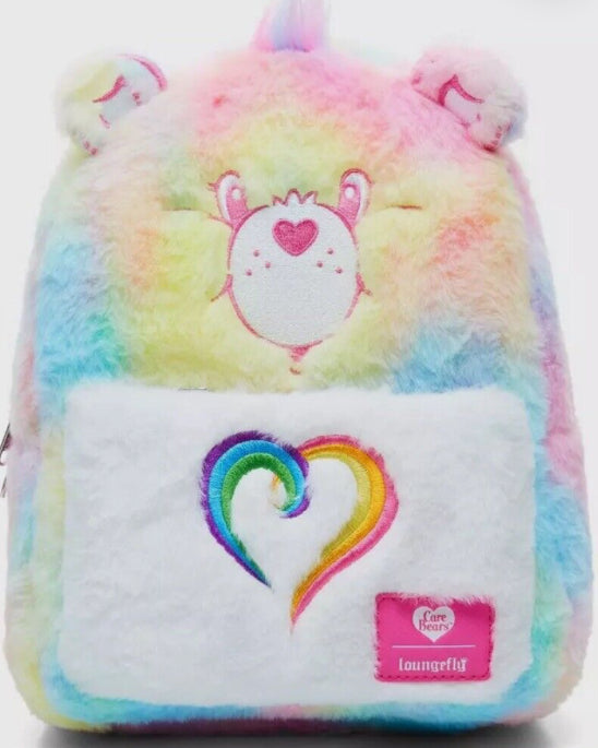 LOUNGEFLY CARE BEARS TOGETHERNESS BEAR FURRY MINI BACKPACK