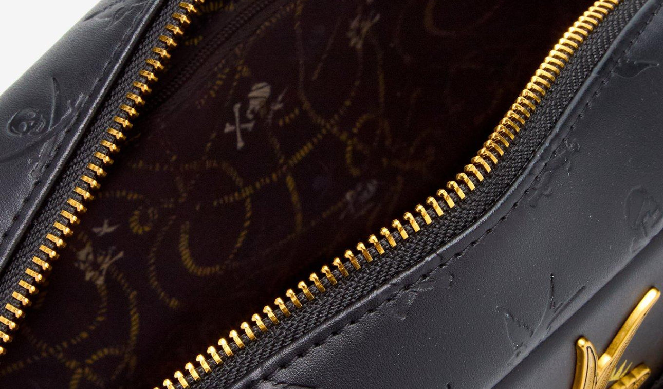 Set sail in style with this Pirates of the Caribbean crossbody bag! Featuring an allover debossed design of sparrows and skulls, the front includes a metal sparrow badge. With two small, zippered pockets on the front and an adjustable strap, this bag is perfect for fans of the films.