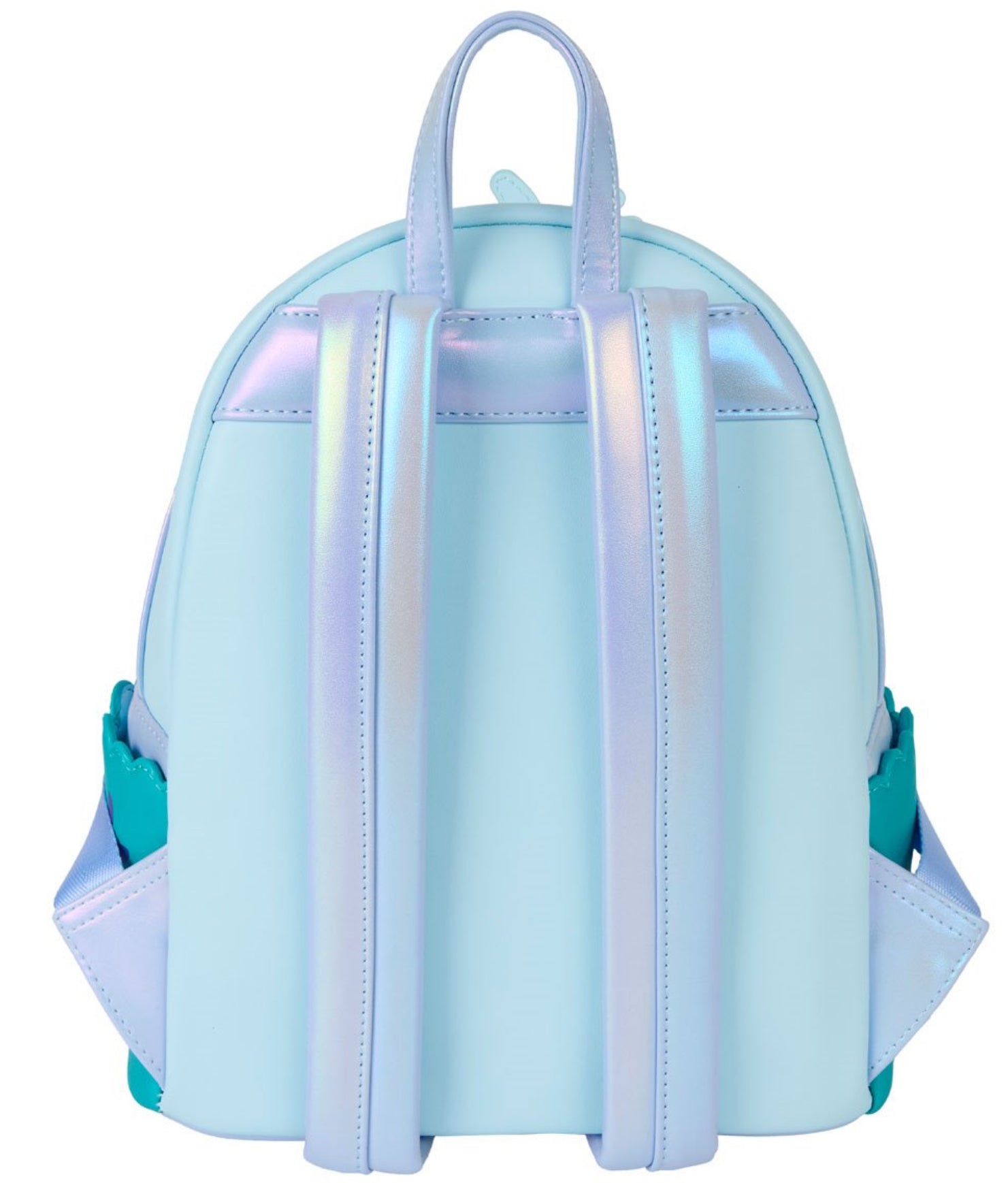This mini backpack features Eeyore amongst the flowers with a butterfly resting on his nose! Metal rivets allow you to spin the flowers on the front pocket. Embroidery and iridescent details uplevel this bag and make it stand out.